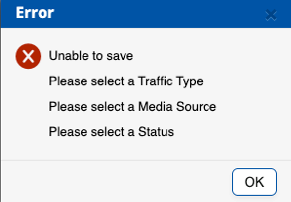 Review the list of Traffic Information fields (e.g., Traffic Type, Status, Department, Media)